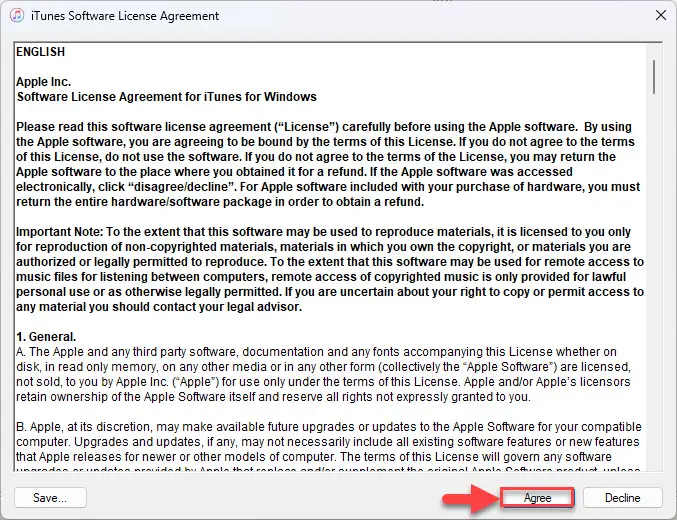 - iTunes will now run automatically for the first time. Before you can do anything else, you must first accept the licensing agreement.