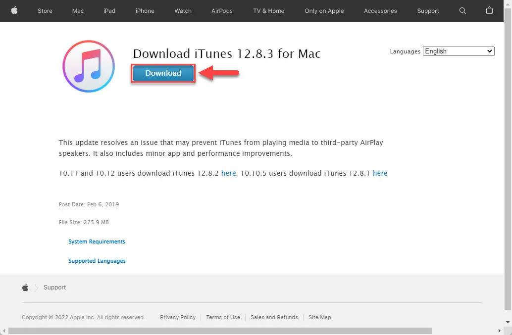 At the moment, the latest iTunes version available for macOS is 12.8.3. Click on the direct download links given below to download iTunes 12.8.3 for your Mac device: