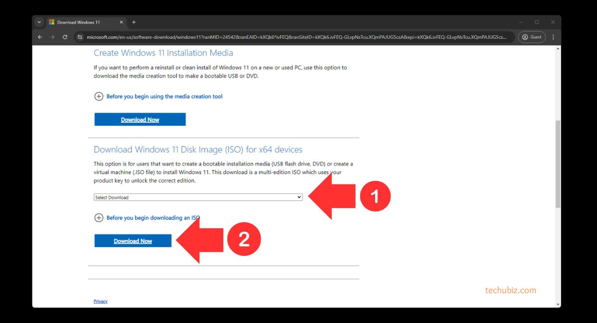 1.Open Microsoft’s Windows 11 download page in any web browser.