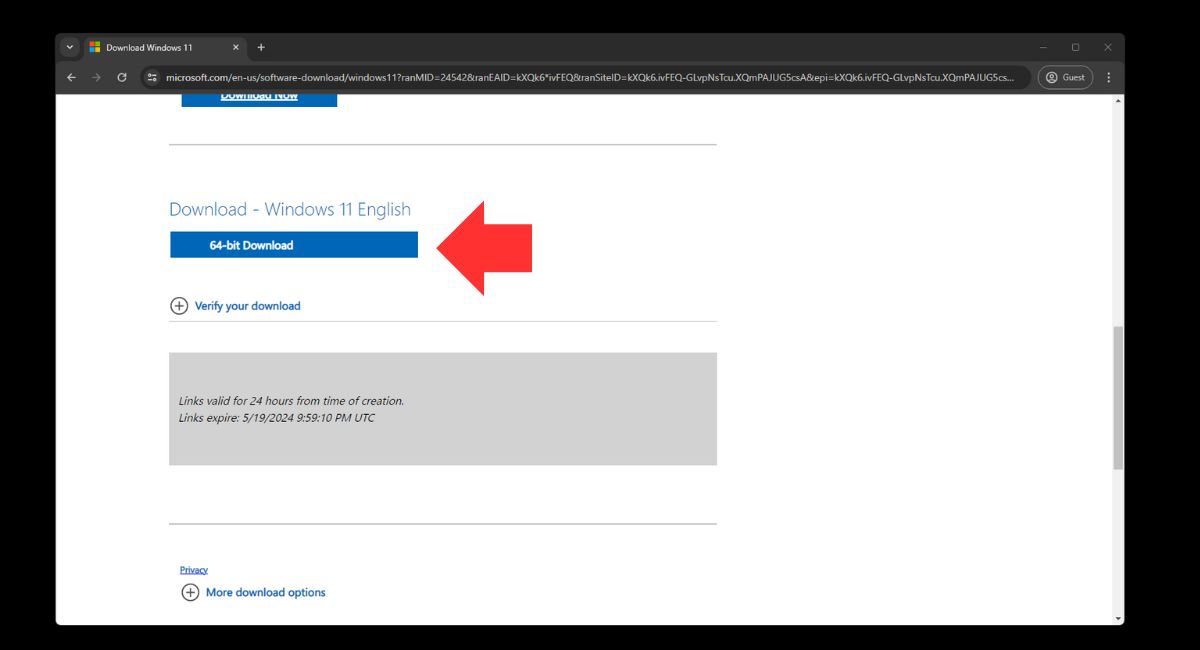 Finally, click 64-bit Download to begin downloading the ISO image.