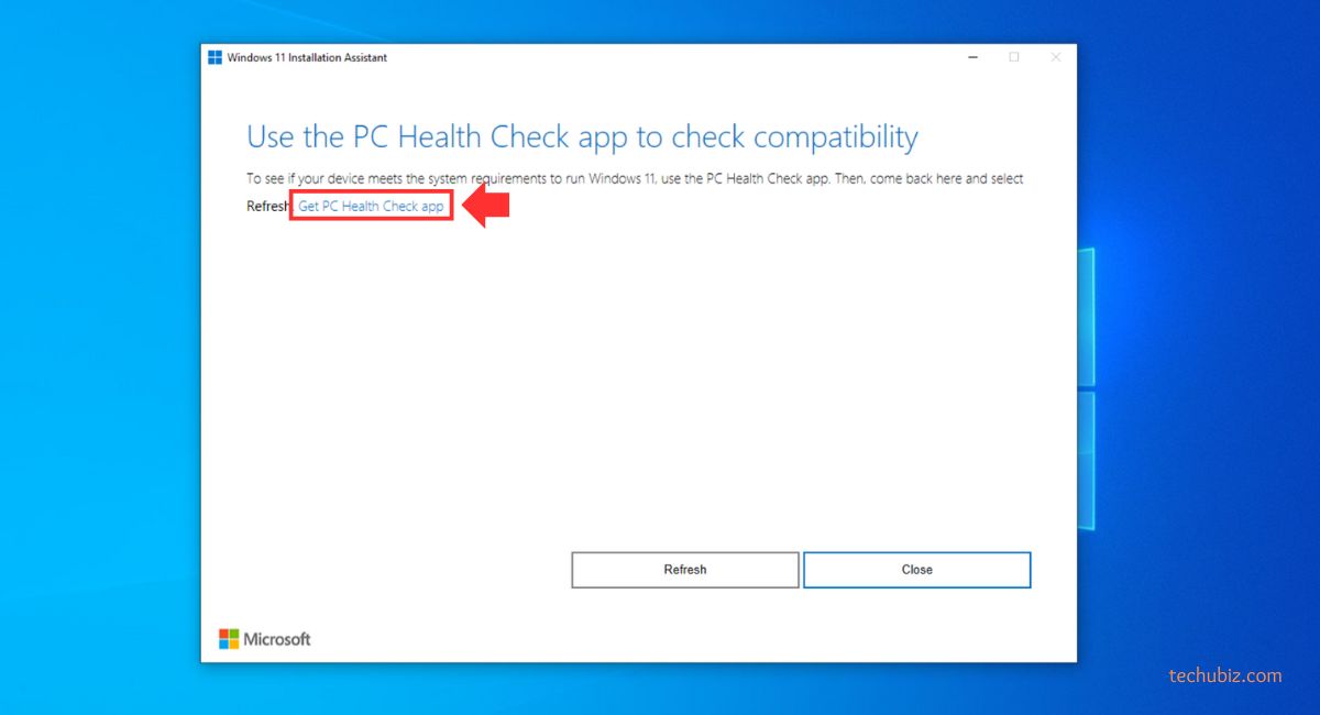 First, you will need to download and install the PC Health Check app regardless if you are already running Windows 11. Click Get PC Health Check app.