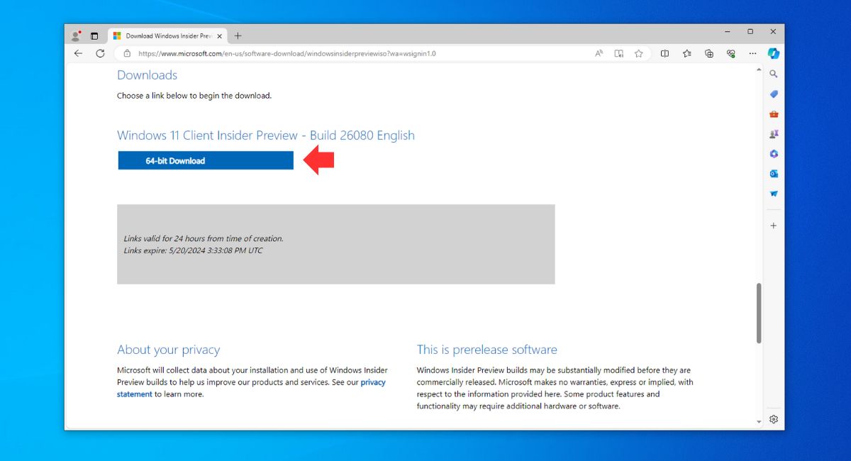our download should now begin instantly. You may then use the Insider ISO to perform a clean install of the chosen Insider Windows build.