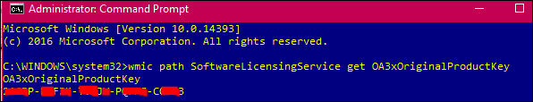wmic path SoftwareLicensingService get OA3xOriginalProductKey