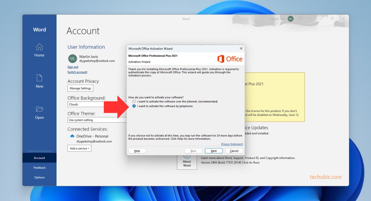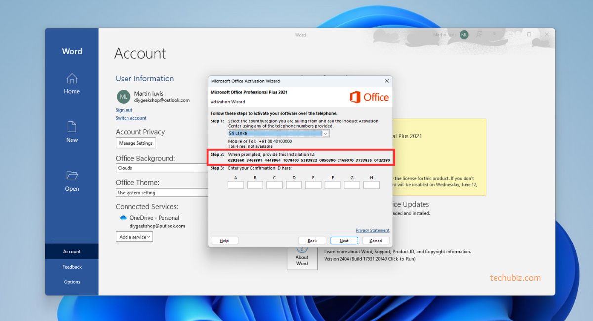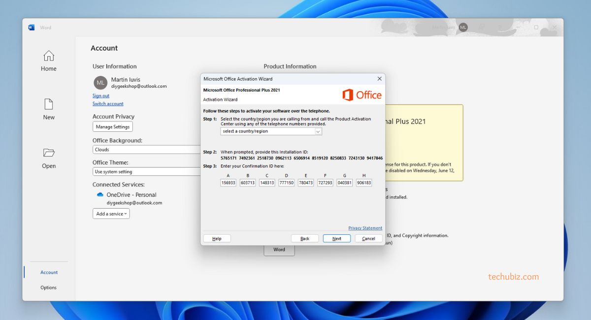 Follow the steps below for how to activate office 2021 via telephone: