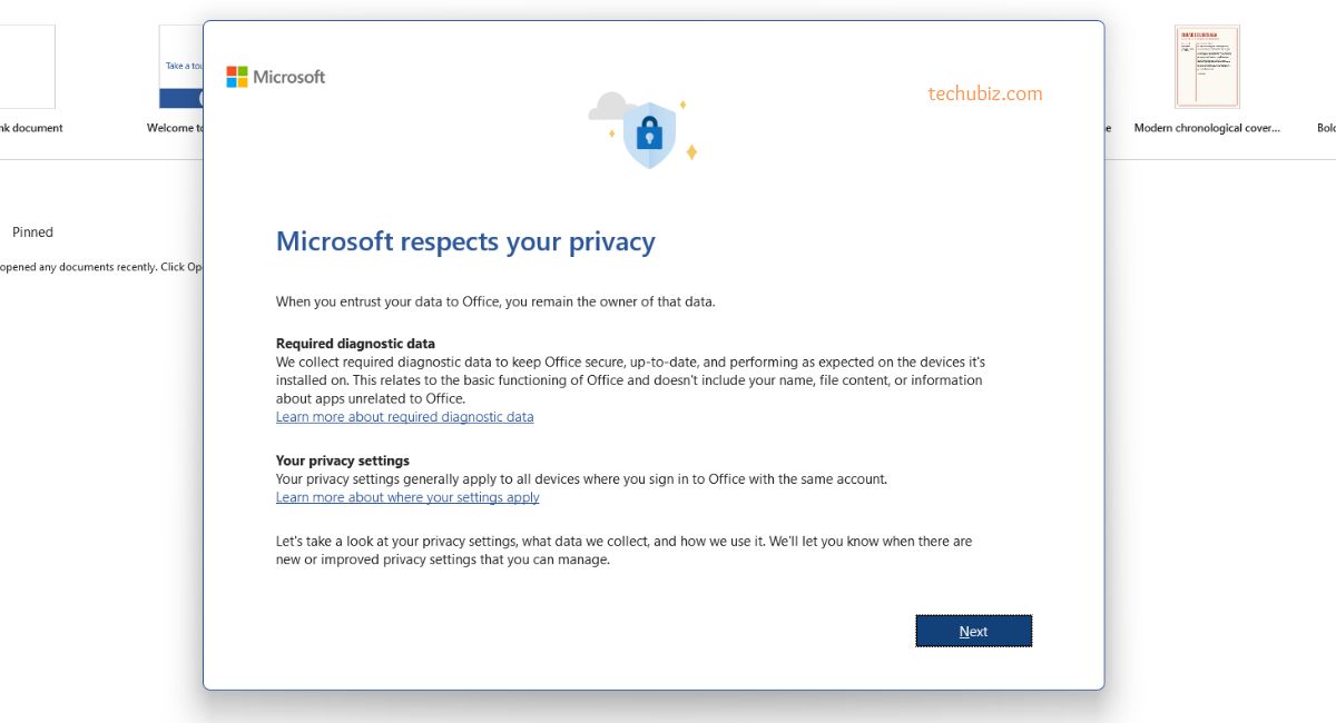 - Open an Office app, e.g. Word or Excel.